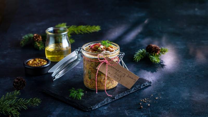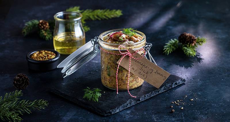 2. Senneps- og honningsild med fersk dill. Enkel å lage, nydelig å gi bort, og enda bedre å sette frem på festfatet. En perfekt gave til den som setter pris på tradisjonelle julesmaker – men med en liten, moderne vri.