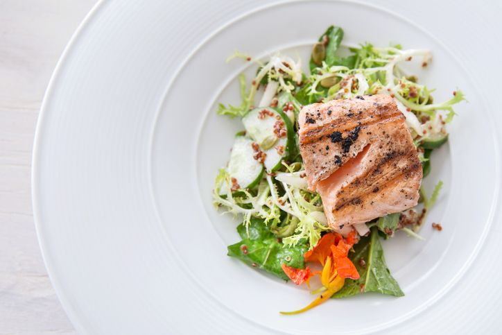 Stekt laks med lun salat