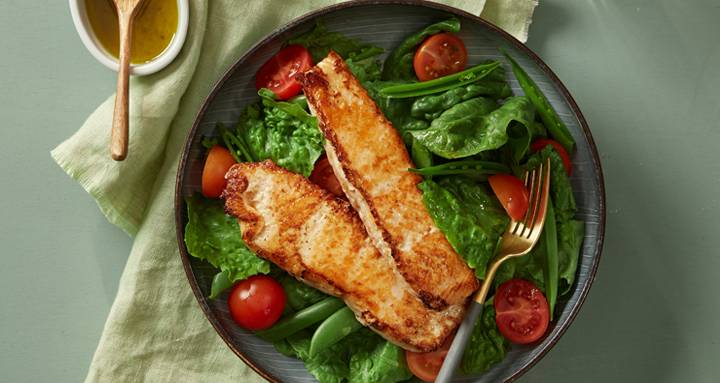 Lag en salat av spinat, sukkererter og småtomater, og tilsett din favorittdressing. Du kan enkelt lage en smakfull dressing med ingredienser du kanskje allerede har i skapet: