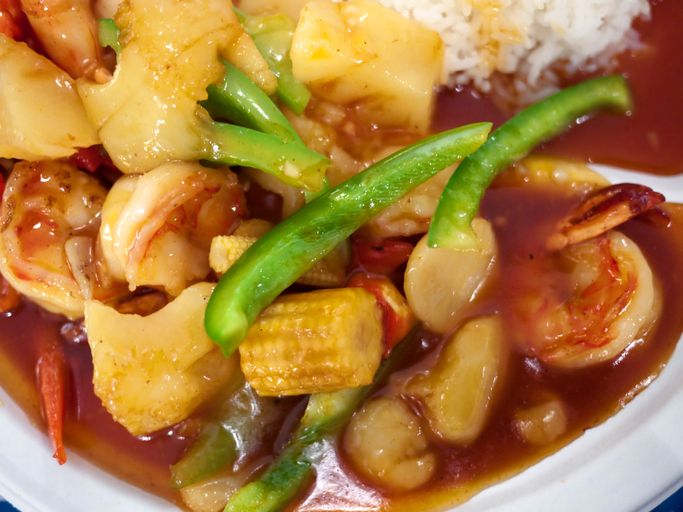 Wok med scampi og sweet and sour saus