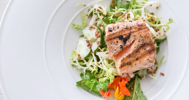 Stekt laks med lun salat