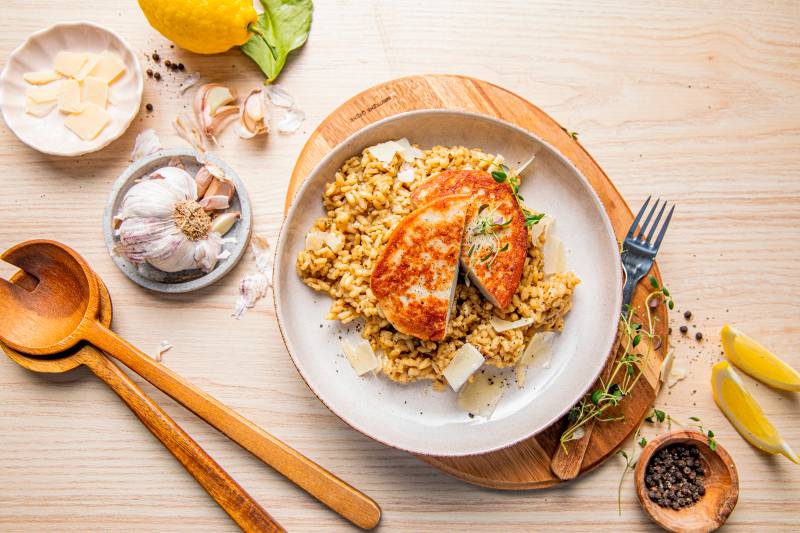 Sopprisotto spises ofte som et måltid for seg selv, men smaker også nydelig som tilbehør til stekt fiskeburger av torsk og bacon. Sammen blir dette en perfekt helgerett du enkelt kan lage til mange. Oppskrift og fremgangsmåte finner du her.