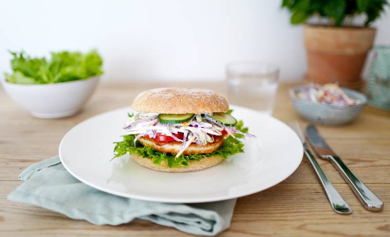 4. Fiskeburger med frisk råkostsalat og chilimajones